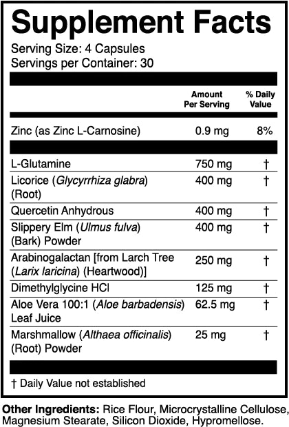 We start with L-Glutamine, the most abundant amino acid in the body and the preferred fuel source of the gut. All tissue in the body can synthesize Glutamine, but in times of stress, there is a need for Glutamine supplementation.*