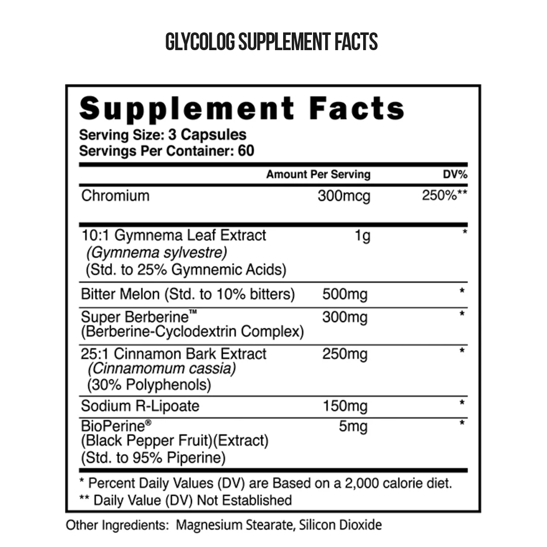 With Meals: Take three (3) Glycolog capsules with two high-carb meals daily to optimize nutrient partitioning.