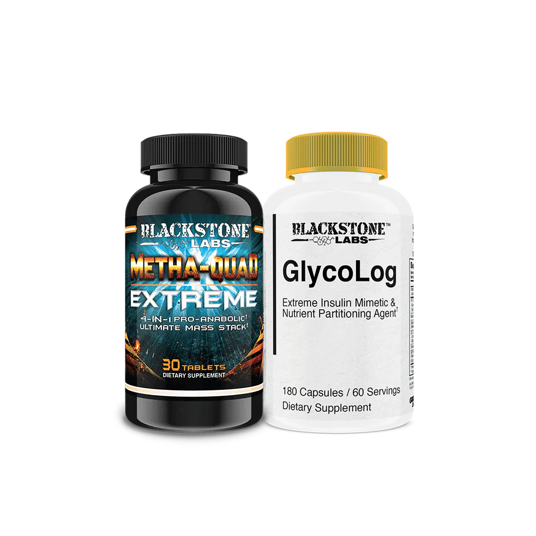 Get ready to take your training and muscle-building to the next level with the Hardcore Anabolic Pre Stack—a powerhouse combination of Blackstone Lab's Metha-Quad Extreme and Glycolog designed to push your anabolic potential into overdrive. Whether you’re looking for rapid size, insane strength gains, or the ability to use carbs more efficiently for muscle growth, this stack has you covered.