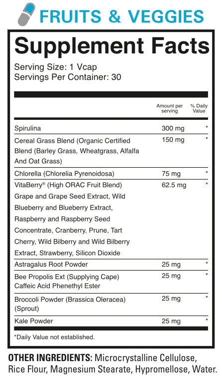 6. Fruit & Veggies - This blend gives the extra edge you need by providing a diverse, superfood blend. This includes broccoli, kale, spirulina, wheat grass, grape seed extract, and so much more! The extra nutrients offer an advantage for boosting antioxidant activity, supporting cellular detoxification, and helping protect against free radicals. All of this can help lead to healthy digestive and immune function.