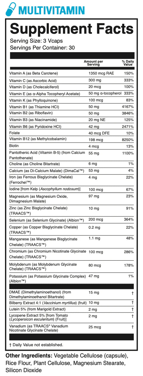 2. Multivitamin - A quality multivitamin is vital to the proper functioning of all the body's systems, including supporting healthy metabolic functions and energy production. An effective amount of each essential vitamin and mineral is included to help your body function at its peak!*