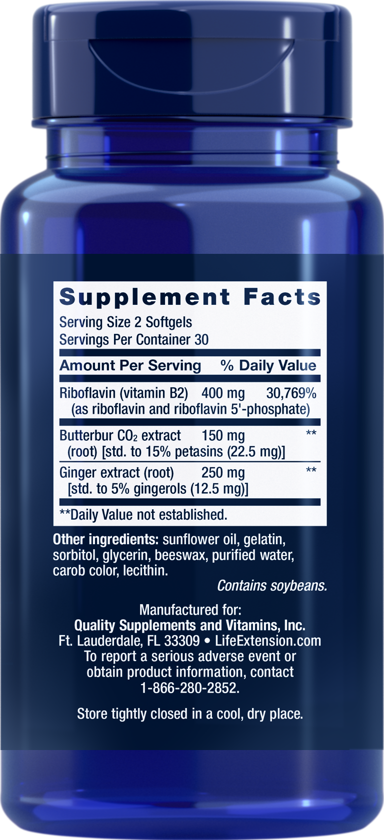 Migra-Eeze™ contains standardized butterbur root extract to provide 22.5 mg of petasin to support head comfort.