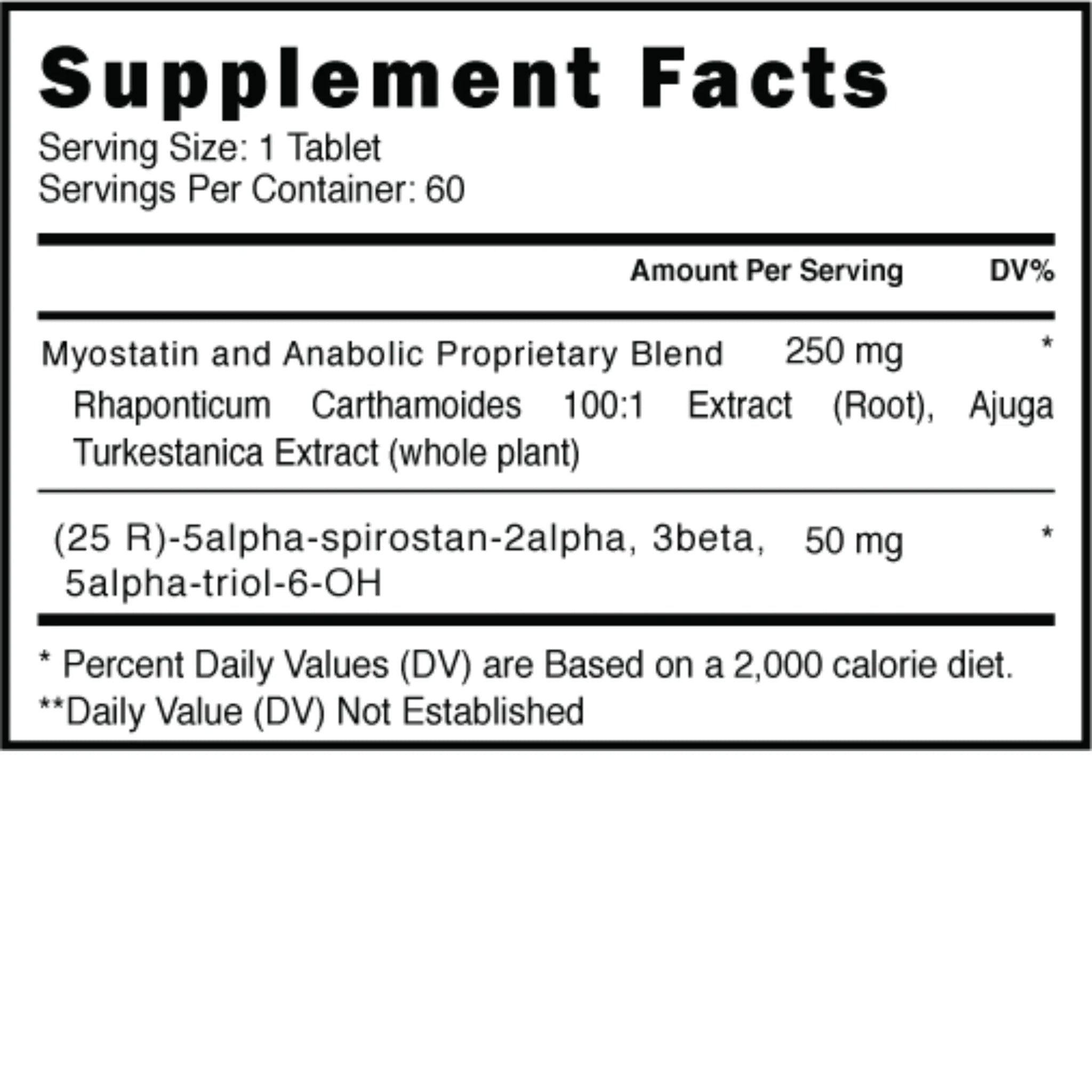 (25 R)-5alpha-spirostan-2alpha, 3beta, 5alpha-triol-6-OH Myo-Stack contains efficacious dosages of a key anabolic compound, including the most potent anabolic compounds ever researched by Russian scientist V.N. Syrov and his team of colleagues, who are responsible for many of the greatest advances in herbal-based nutraceutical sports nutrition. This interesting compound is 25R, spirostan-5a-diol-6-one-3-one, which demonstrated a 33:1 anabolic to androgenic ratio. It is the 6-keto derivative of diosgenin (6-keto-diosgenin). This amazing plant steroid has been shown to significantly enhance protein synthesis void of any androgenic pathway activity, which makes it exceptionally desirable to bodybuilders and strength athletes. In fact, athletes from Russia and other Eastern Bloc countries have been incorporating this powerful compound into their arsenal of anabolic agents for nearly 40 years.