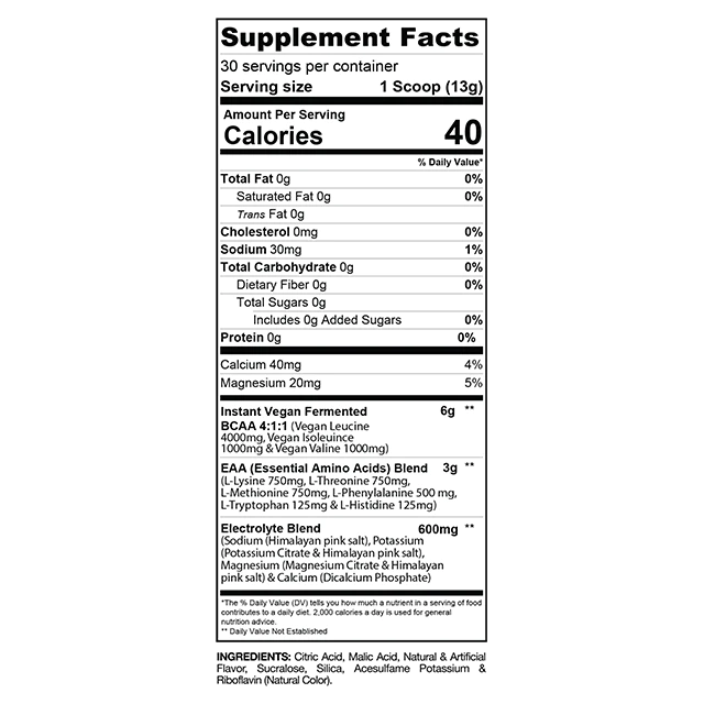 6g VEGAN FERMENTED BCAAs | 9g TOTAL ESSENTIAL AMINO ACIDS