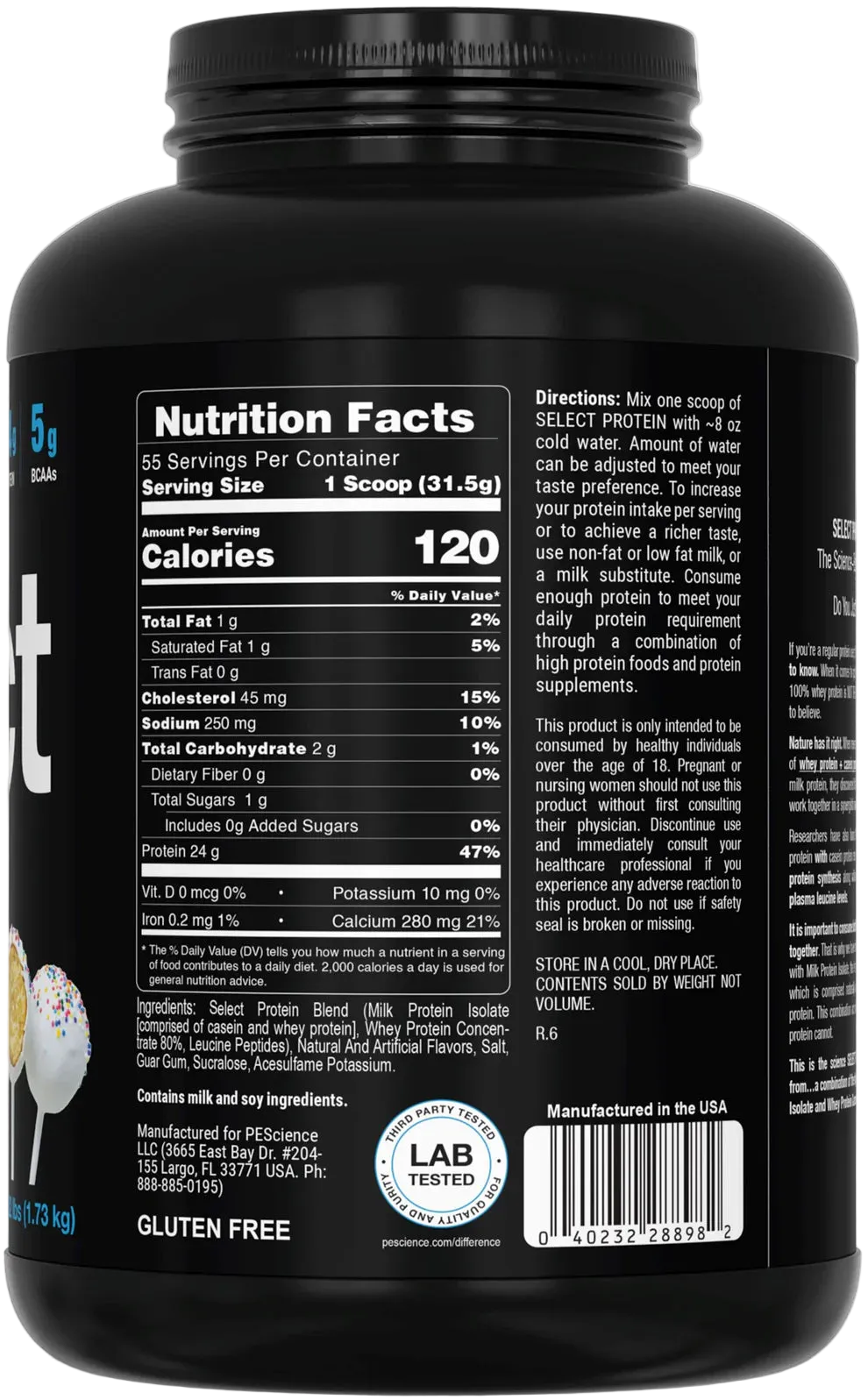 Select Protein is the pioneering protein of the whey + casein blend, shown to be more effective than 100% whey and uses premium milk protein isolate as the #1 ingredient. With all irresistible flavors developed in-house through our proprietary process, Select will be the first protein that you will actually crave every day. Carb friendly, low in fat and sugar.
